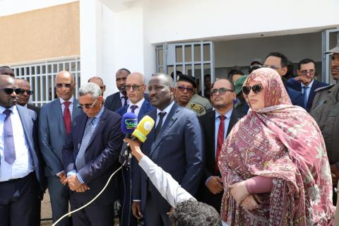 وكان في استقبال معالي الوزير لدى وصوله المديرية العامة لإدارة السجون، والسجن المركزي، والي ولاية انواكشوط الغربية وحاكمة مقاطعة لكصر وعمدتها وقادة الأجهزة الأمنية والقضائية بالولاية، وفي زيارته لسجن دار النعيم استقبل معالي الوزير من طرف والية انواكشوط الشمالية وحاكمة دار النعيم وعمدة المقاطعة وقادة الأجهزة الأمنية والقضائية بالولاية الشمالية.